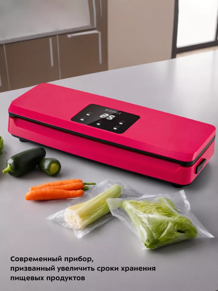 Вакууматор Kitfort КТ-1542 очень прост в использовании. Чтобы провести запаковку продукта, необходимо поместить его в специальный пакет, предназначенный для вакуумирования. Открытый край пакета укладывается в вакуумную камеру. После этого нужно закрыть крышку вакууматора и включить устройство. Вакууматор удалит из пакета воздух. В результате образования вакуума пакет плотно обжимает содержимое. Как только воздух удален, начинается запечатывание открытой стороны пакета. В результате воздух уже не сможет проникнуть внутрь.