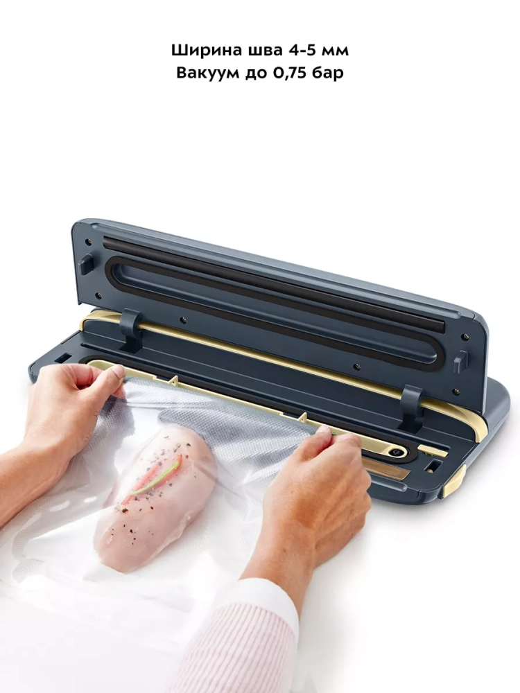 В вакууматоре отсутствует двигатель, поэтому вакууматор достаточно тихо создает вакуум в пакете.