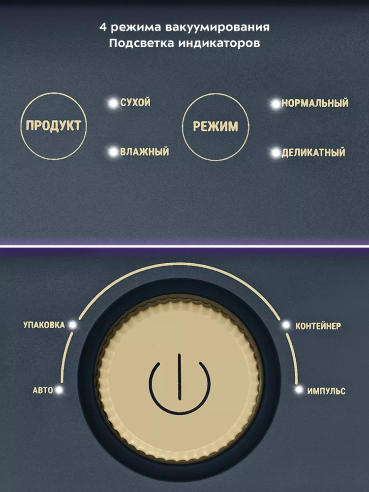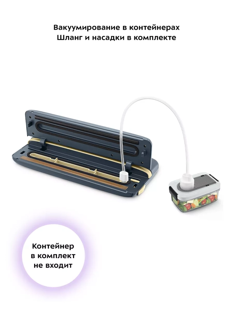 В KT-1546 есть возможность вакуумирования сухих и влажных продуктов. Вы можете выбрать нормальный или деликатный режим удаления воздуха из пакета или запечатать пакет без предварительного вакуумирования. У прибора есть функция вакуумирования продуктов в специальных контейнерах.