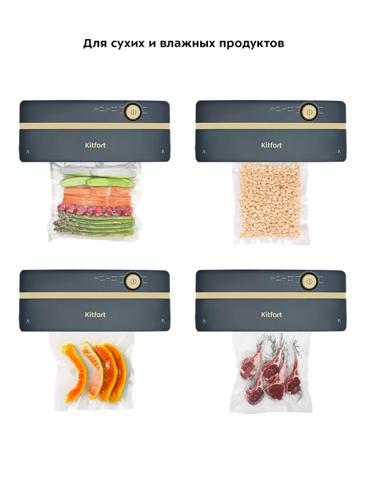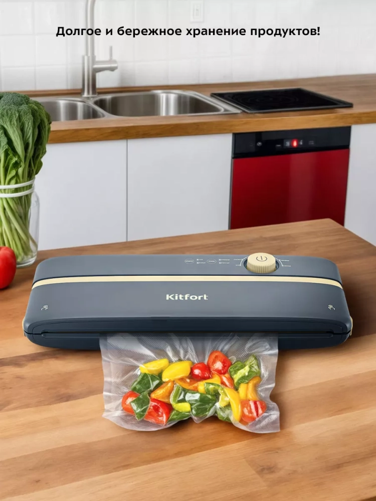 Вакууматор Kitfort КТ-1546 — устройство для вакуумной упаковки продуктов. Вакуумирование позволяет защитить пищевые продукты, сохранить их аромат и продлить срок годности. Такой метод хранения уменьшает риск развития бактерий, которые появляются из-за взаимодействия пищи с воздухом. Удаление воздуха из пакета гарантирует замедление процессов брожения, окисления и испарения, позволяя сохранить приятный внешний вид и качество самых разных продуктов питания. Вакуумирование значительно ускоряет засолку и маринование.