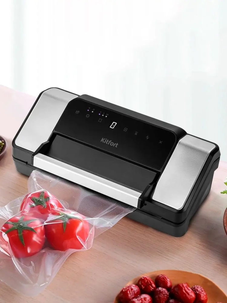 Техника Kitfort оснащена функцией запайки, что позволяет надежно закрывать пакеты после удаления воздуха. Это предотвращает процесс брожения и сохраняет продукты свежими дольше. Вакууматор также может использоваться для упаковки туристической одежды и вещей, экономя место в чемодане. Вакуумный упаковщик Kitfort — это не только экономия денег, но и удобство в хранении продуктов и вещей.