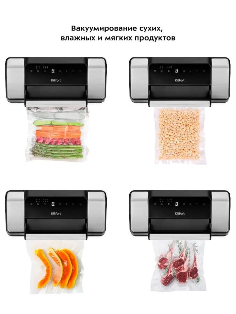 Вакууматор Kitfort КТ-1532 — это мощный и компактный прибор, который станет незаменимым помощником на вашей кухне. Эта бытовая техника предназначена для вакуумного хранения продуктов, обеспечивая их свежесть и продлевая срок хранения. Вакуумный упаковщик Kitfort позволяет эффективно использовать вакуумные пакеты и контейнеры, что делает его идеальным для хранения продуктов в холодильнике и экономии места на кухне.