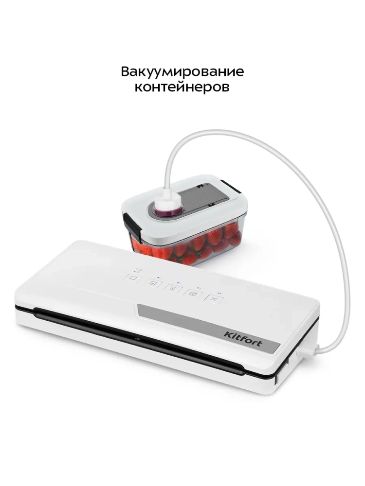 В KT-1556 есть возможность вакуумирования сухих и влажных продуктов. Вы можете запечатать пакет без предварительного вакуумирования. Также у прибора есть режим вакуумирования продуктов в специальных контейнерах.