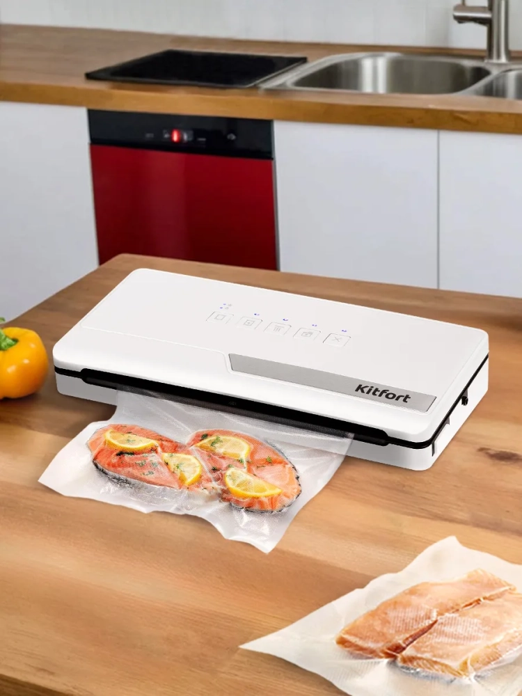 Вакууматор Kitfort КТ-1556 — устройство для вакуумной упаковки продуктов. Вакуумирование позволяет защитить от пыли и грязи, сохранить аромат и продлить срок годности пищевых продуктов. Такой метод хранения уменьшает риск развития бактерий, которые появляются из-за взаимодействия пищи с воздухом. Удаление воздуха из пакета гарантирует замедление процессов брожения, окисления и испарения, позволяя сохранить приятный внешний вид и качество самых разных продуктов питания. Вакуумирование значительно ускоряет засолку и маринование.