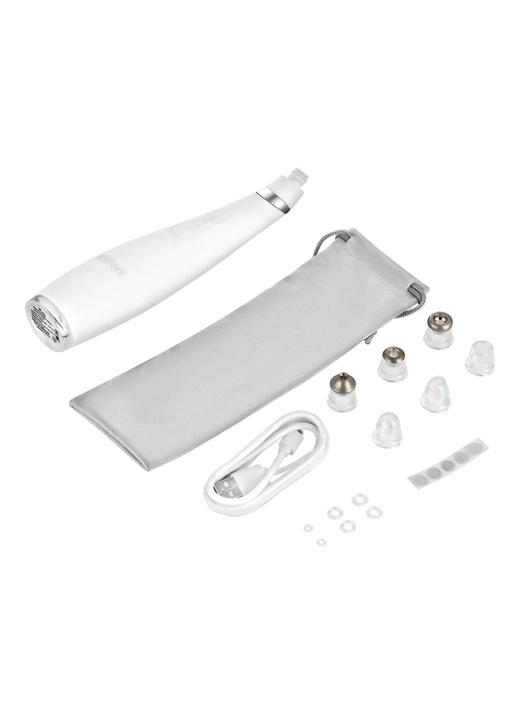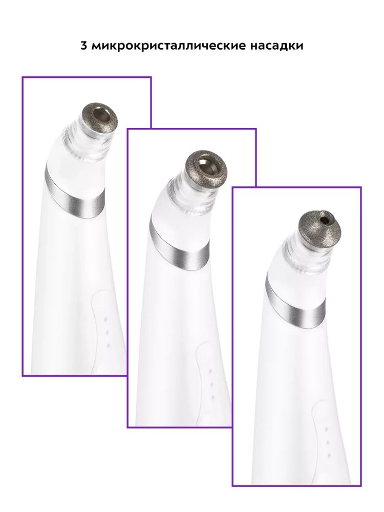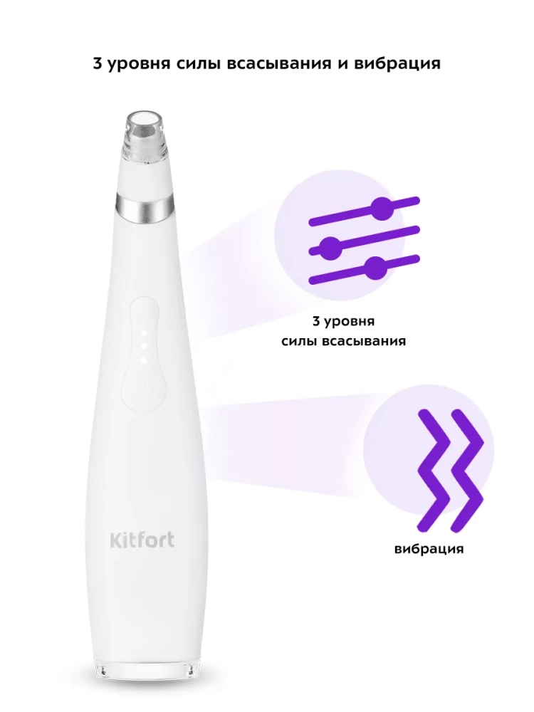 Вакуумный очиститель кожи Kitfort KT-3125 поможет очистить кожу от черных точек, сальных пробок и других загрязнений в порах. Также благодаря набору насадок с помощью вакуумного очистителя кожи можно провести процедуру микродермабразии. Вакуумная чистка кожи стимулирует кровообращение и регенерацию кожи, что улучшает цвет лица и убирает неглубокие морщины. Вакуумный очиститель кожи имеет 3 уровня силы всасывания для очищения разного типа кожи (сухой, нормальной и жирной) и функцию вибрации. В комплекте к устройству предусмотрено 6 видов насадок. Большая круглая насадка нужна для удаления загрязнений из пор крупных участков кожи, например, Т-зоны. Эта насадка подойдет для удаления особенно стойких загрязнений кожи. Малая круглая насадка подходит для проведения вакуумной чистки чувствительных участков кожи на лице. Для удаления загрязнений на труднодоступных участках кожи лица, таких как крылья носа и уголки губ, предназначена овальная насадка. Использование микрокристаллических насадок способствует отшелушиванию поверхностного слоя кожи, который состоит из омертвевших клеток, а также полировке кожи. Эти насадки помогают в борьбе с морщинами, пигментными пятнами и растяжками. Микрокристаллические насадки разного размера подходят для очистки тела, лица и труднодоступных участков кожи лица. Вакуумный очиститель кожи работает от аккумулятора и имеет небольшие габариты, поэтому его удобно брать с собой в путешествие. В комплекте есть сумка, в которой вы можете хранить устройство с аксессуарами, чтобы не потерять их. Ухаживать за устройством просто, так как в комплекте предусмотрены запасные фильтры и набор уплотнительных колец.