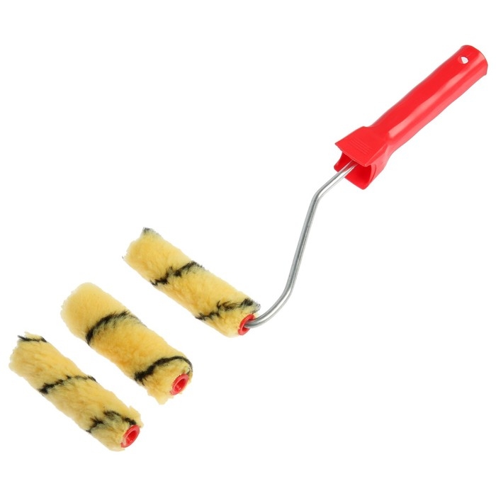 Валик ЛОМ, полиэстер, 100 мм, рукоятка d=6 мм, D=16 мм, ворс 10 мм, 2 запасных шубки