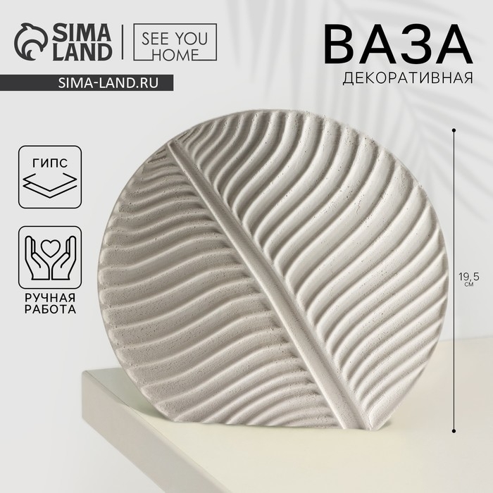 Ваза для цветов декоративная "Лист", белая, 19,5 х 20,7 х 3 см