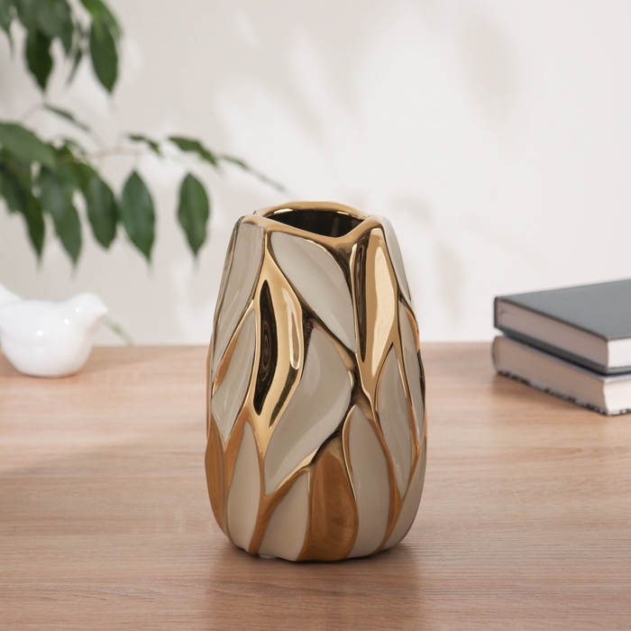 Ваза керамика настольная "Аксель" 18х9,5 см, бело-золотистый