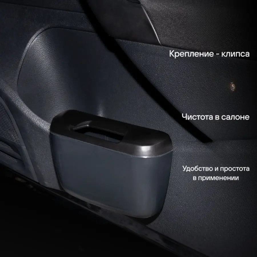 Ведерко предназначено для сбора мусора в салоне автомобиля, в комплекте имеет клипсу с помощью которой его можно повесить или поставить в любом удобном месте. Например: карман двери или спинки сиденья.
