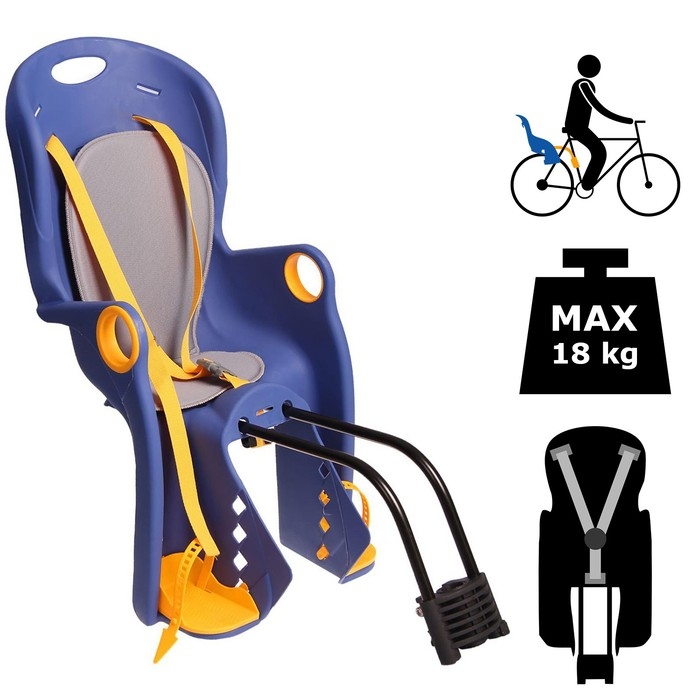 Велокресло заднее BQ-5A предназначено для детей весом до 18 кг. Легко устанавливается на подседельную трубу, оснащено мягкой накладкой на спинку и сиденье. Трёхточечный ремень безопасности можно подогнать по размеру. Благодаря широким стенкам и регулирующимся по высоте подпятникам ножки ребёнка не попадут в спицы колеса.