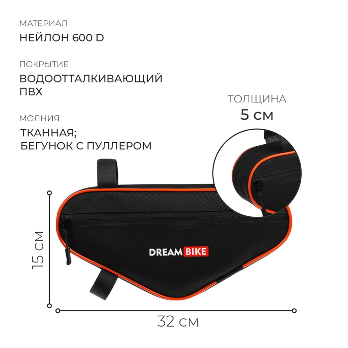 Велосумка Dream Bike под раму, 32х15х5, цвет чёрный/оранжевый