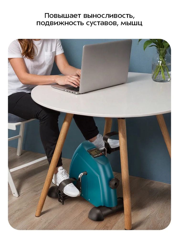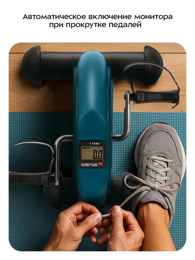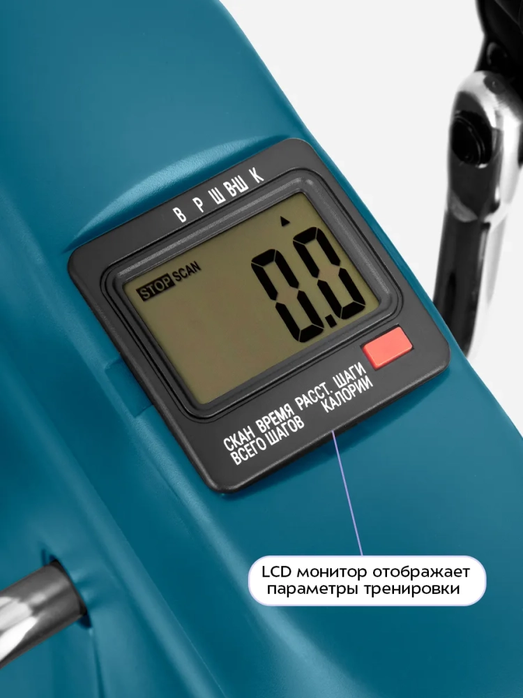 На мониторе велотренажера отображаются параметры тренировки: время, расстояние, количество шагов (оборотов педалей) за тренировку, количество шагов (оборотов педалей) за все время и количество сожженных калорий. Это позволит вам контролировать нагрузку во время тренировки и ее длительность.