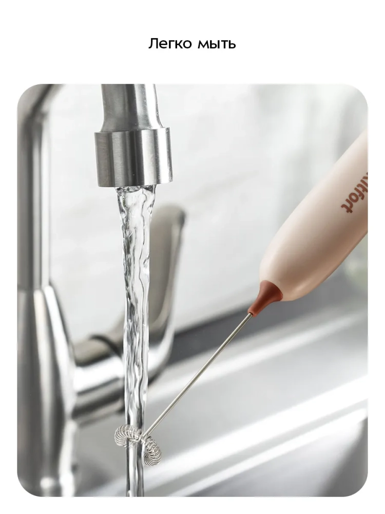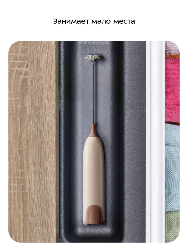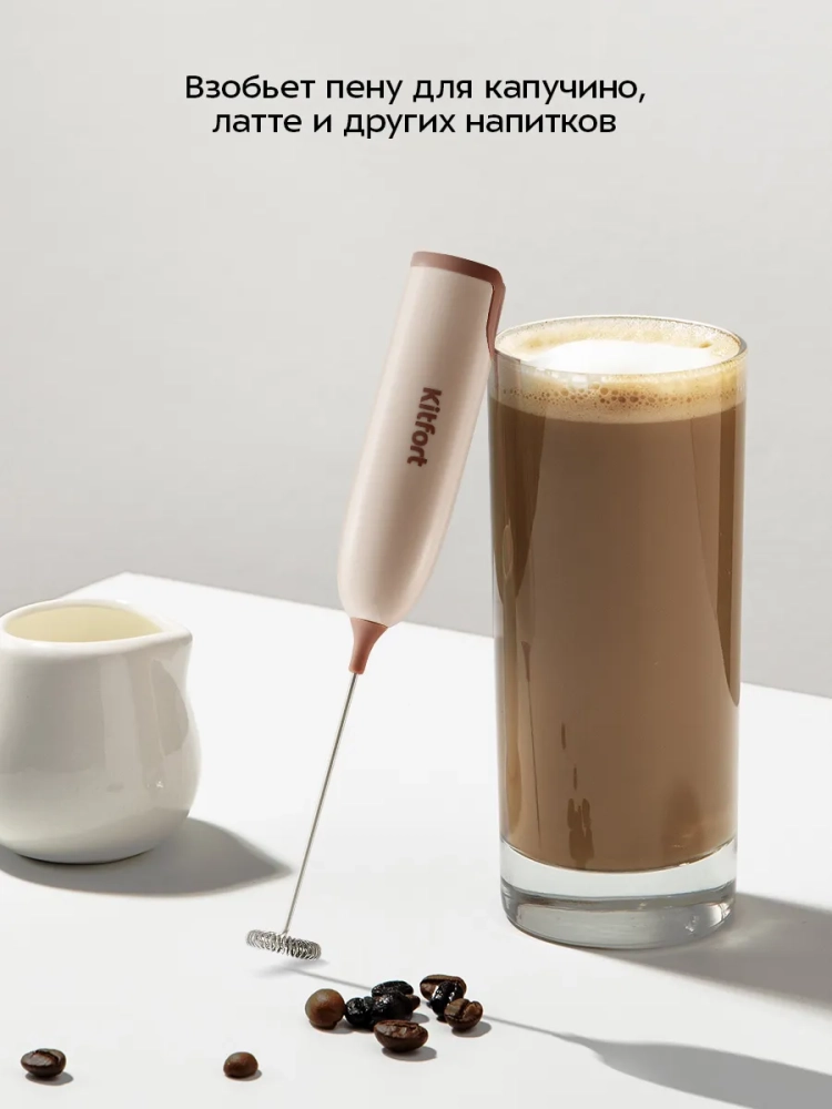 Венчик для взбивания Kitfort КТ-7607 предназначен для вспенивания молока. Внутри венчика есть маленький мотор, который работает от двух батареек типоразмера АA (батарейки в комплект не входят). Пользоваться прибором очень просто: налейте молоко в емкость, поместите в нее венчик и нажмите на кнопку включения. Венчик для взбивания занимает мало места, он прост и удобен в использовании.