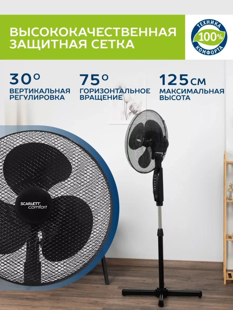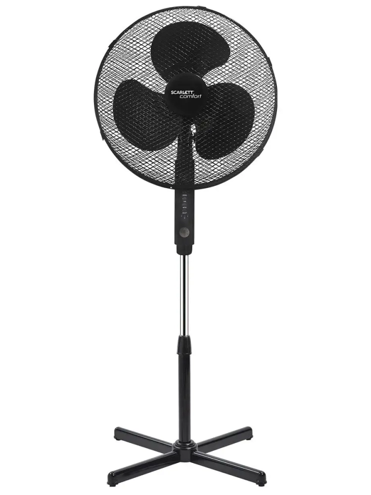Вентилятор Scarlett SC-SF111RC09 напольная модель идеально подходящая для дома и обладающая достойными техническими характеристиками. Мощность мотора равна 40 Вт. Потоки воздуха создают три лопасти. На выбор 3 режима скоростей. Установить время работы на ночь поможет таймер. Управление прибором возможно из любой точки помещения при помощи пульта дистанционного управления. Возможность регулировки высоты, угла наклона и вращения поможет угодить любому пользователю.