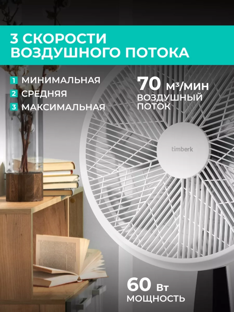 Преимущества прибора: -6 лопастей -Пульт дистанционного управления -Встроенный программируемый таймер на 7.5 часов -Цветной дисплей с сенсорным управление -3 скорости воздушного потока -3 режима работы -Работа в фиксированном положении и с поворотом до 90° -Регулировка высоты и наклона -Безопасная защитная сетка -Устойчивая круглое основание 43 см -Уникальный дизайн лопастей
