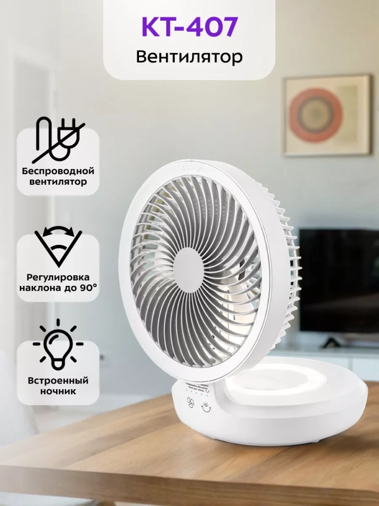 Вентилятор настольный беспроводной КТ-407 - 5 Вт