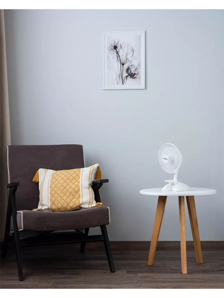 Настольный вентилятор SCARLETT SC-DF111S01 с режимом бесшумной работы станет незаменимым помощником в душном офисе и любом малогабаритном пространстве. Компактный прибор оснащён регулируемым наклоном в диапазоне от 0 до 60 градусов, вращением в 360 градусов с фиксацией каждые 30 градусов и 2 скоростями работы. Удобная съемная подставка и защита от перегрева облегчают процесс эксплуатации вентилятора и делают его безопасным. Прищепка дает дополнительные возможности по размещению вентилятора. Высококачественная защитная решётка обеспечит безопасность во время работы.