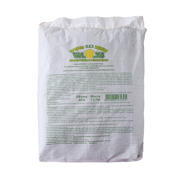 Вермикомпост на основе удобрения органического "БИУД" компоста марки КРС, 20 л