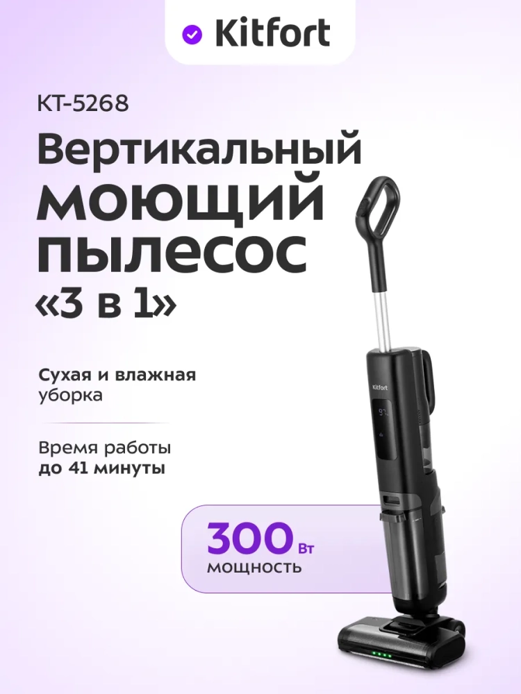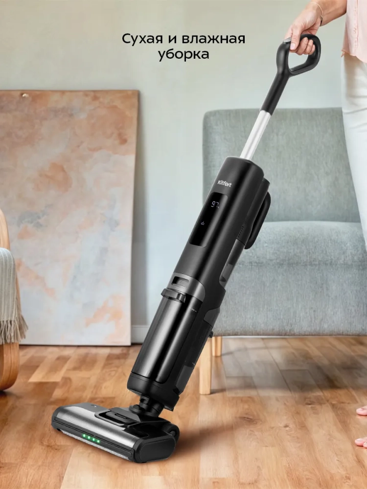 Беспроводной вертикальный моющий пылесос «3 в 1» КТ-5268 очень удобен при проведении влажной и сухой уборки. Благодаря работе от аккумулятора во время использования пылесос не нужно включать в сеть и провода не будут мешать под ногами. Конструкция прибора «3 в 1» позволяет его использовать в качестве моющего, ручного и вертикального пылесоса.