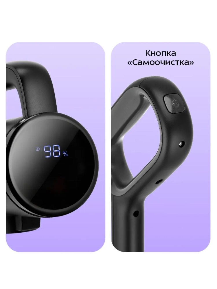 В комплекте есть мини-турбощетка, насадка «2 в 1» и узкая насадка. Насадки удобно хранить на специальных держателях, которые подсоединяются к базе.
