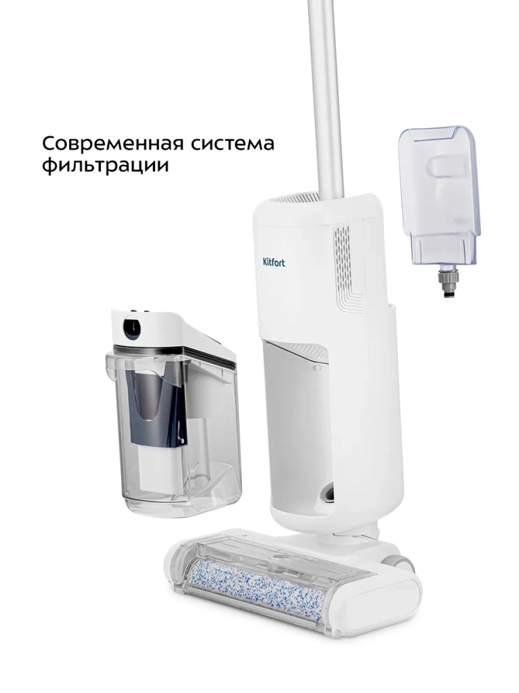 Беспроводной вертикальный моющий пылесос Kitfort КТ-5231 очень удобен при проведении влажной уборки. Благодаря работе от аккумулятора во время использования пылесос не нужно включать в сеть и провода не будут мешаться под ногами. В данной модели аккумулятор съемный, его удобно заряжать, отсоединив от пылесоса.