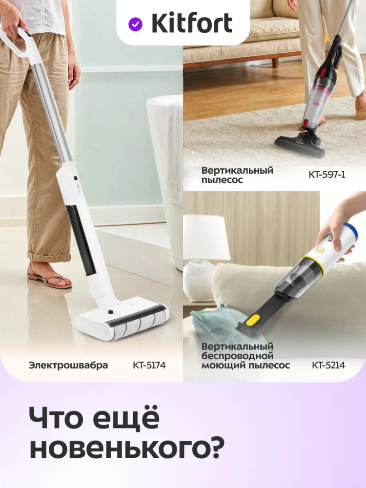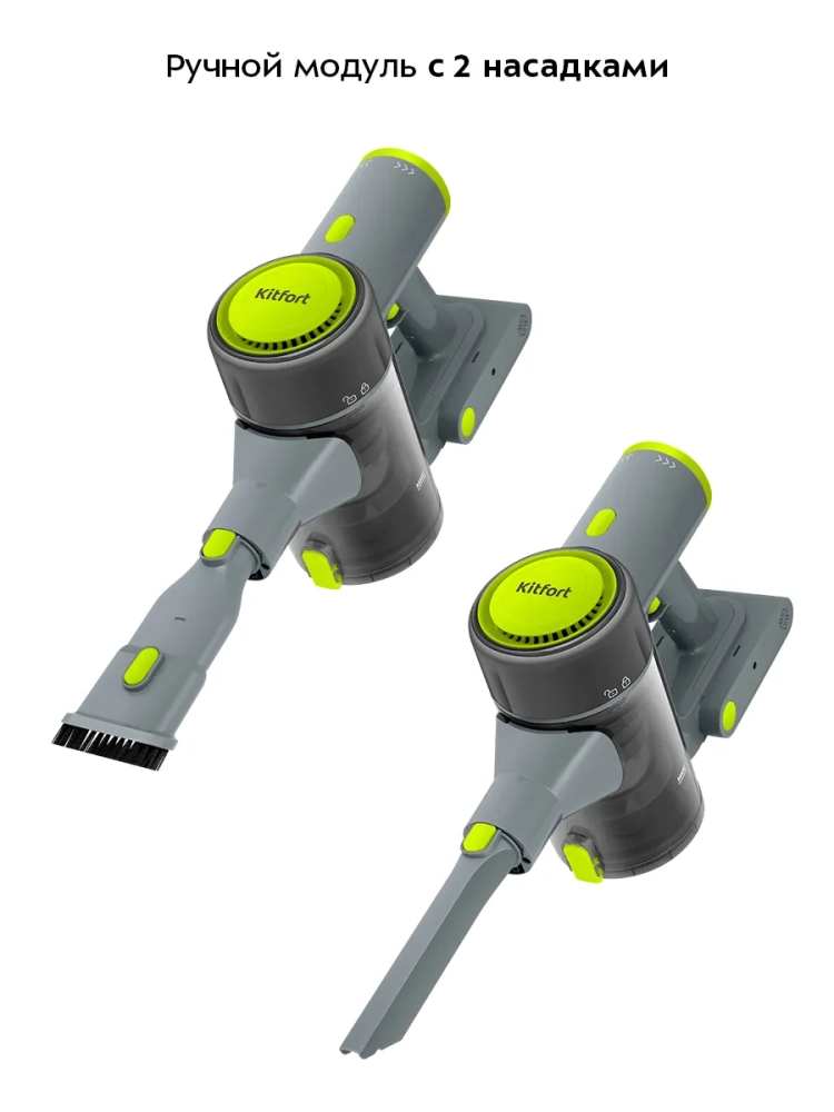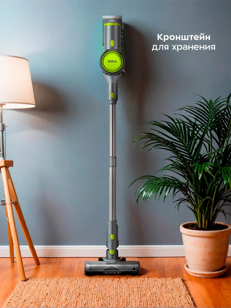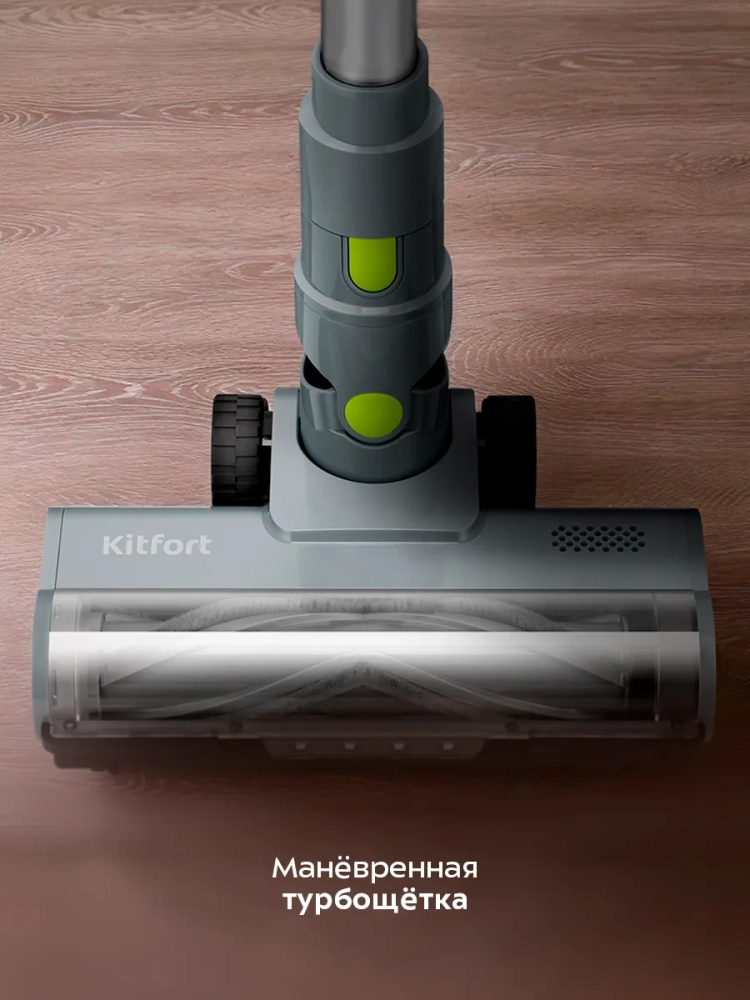 Беспроводной вертикальный пылесос Kitfort КТ-5306 очень удобен при локальной уборке. При отсоединении удлинительной трубки и установке насадки он превращается в ручной пылесос. Его конструкция позволяет легко проникать в самые труднодоступные уголки квартиры. При этом не нужно передвигать громоздкий корпус проводного пылесоса и управляться с непослушным шлангом. Благодаря работе от аккумулятора не нужно включать вилку в розетку, провода не мешают под ногами.