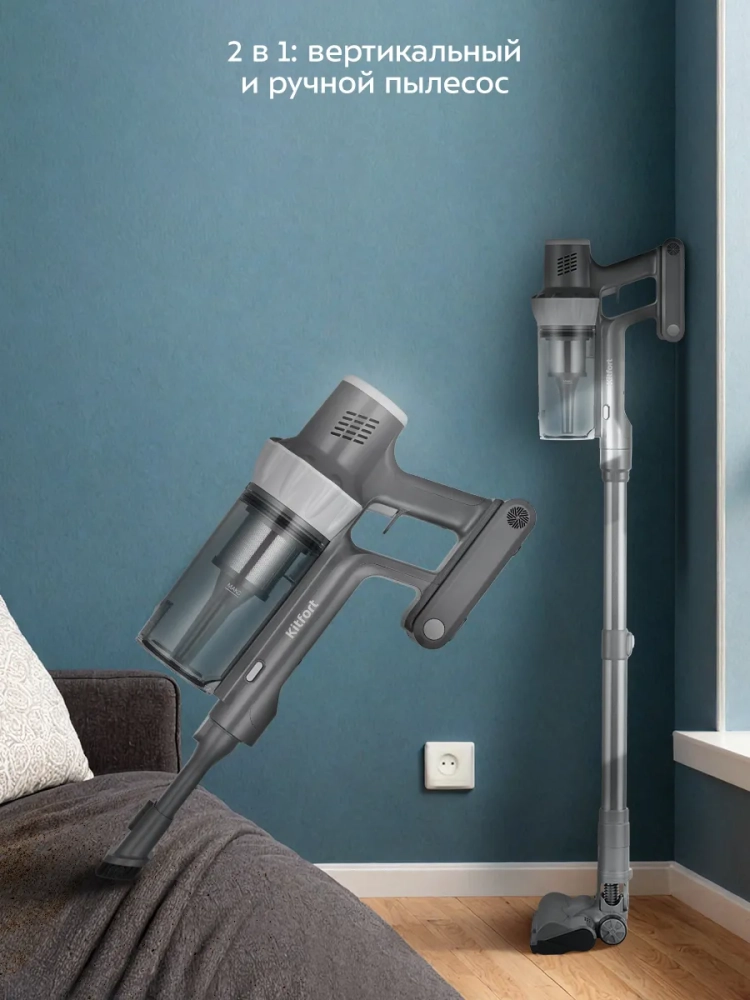 Конструкция «2 в 1» предусматривает наличие ручного пылесоса, который удобно использовать отдельно. Ручным пылесосом можно пропылесосить углы и плинтусы, обивку мебели, пыль со шкафов, шкафчики на кухне или в гостиной, книжные полки, коврики в автомобиле или багажник.