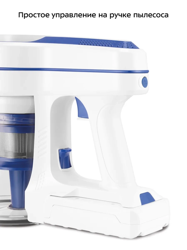 Пылесос комплектуется напольной насадкой с турбощеткой, которая помогает качественно справиться с очисткой гладких поверхностей и ковровых покрытий с не очень длинным ворсом. Светодиодная подсветка напольной щетки сделает уборку комфортной даже в затемненных местах. Также к пылесосу прилагаются насадка «2 в 1», щелевая насадка и база для зарядки и настенного хранения устройства, у которой также предусмотрено место для хранения насадок.