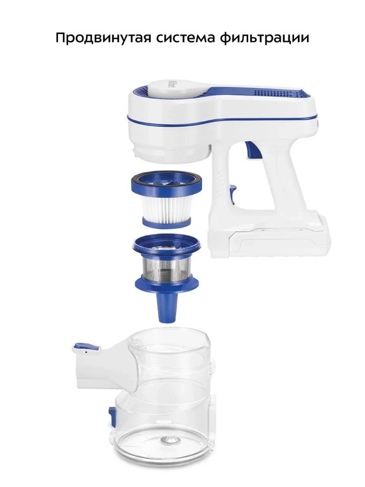 Пылесос оборудован современным циклонным фильтром, обеспечивающим хорошую очистку. Крышка пылесборника легко открывается, а пыль из него вытряхивается очень просто. Внутри пылесборника находится фильтр тонкой очистки и фильтр грубой очистки c металлической сеткой, которые можно вынуть и почистить.