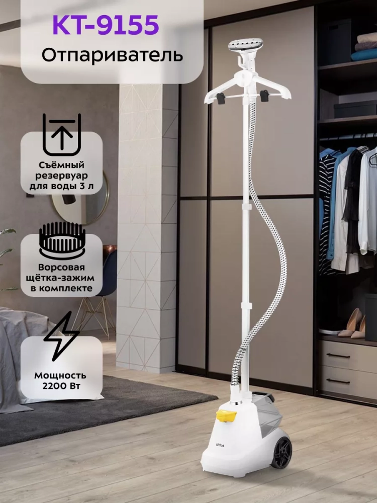 Отпариватель напольный для одежды Kitfort КТ-9155 — это мощный бытовой прибор, который станет незаменимым помощником в уходе за текстильными изделиями. Он представляет собой вертикальный пароотпариватель, который эффективно справляется с задачами, которые обычно выполняет утюг. Благодаря своей конструкции и функциональности, отпариватель позволяет быстро и качественно прогладить одежду и другие текстильные изделия. Идеальный подарок на любой случай: на Новый год, 23 февраля, 8 марта, день рождения, свадьбу или юбилей!