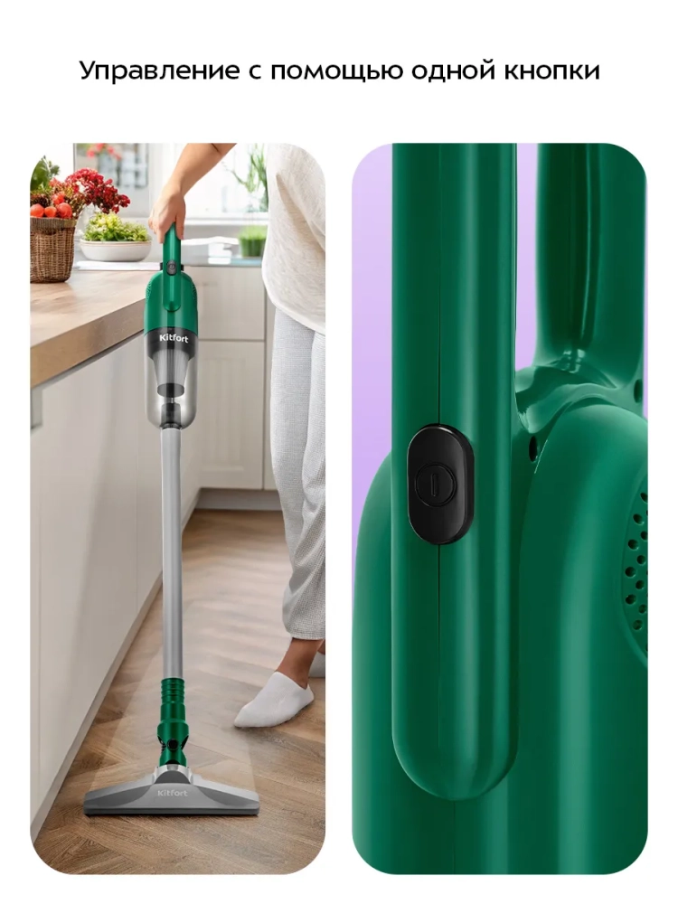 Вертикальный пылесос 3 в 1 КТ-5363 от Kitfort — это универсальное бытовое решение для уборки вашего дома. Этот мощный и компактный прибор позволяет проводить как сухую, так и влажную уборку, что делает его незаменимым помощником в быту. Благодаря своей конструкции, пылесос легко трансформируется из вертикального в ручной, что особенно удобно для очистки труднодоступных мест. Техника оснащена емкостью пылесборника на 1 литр и резервуаром для воды объемом 350 мл, что обеспечивает длительную работу без необходимости частой очистки контейнера. Мощность устройства составляет 700 Вт, а длина шнура — 3,8 метра, что позволяет свободно перемещаться по комнате во время уборки. Этот проводной вертикальный пылесос идеально подходит для чистки дивана, ковра и пола благодаря специальным насадкам. Он с легкостью справляется с удалением пыли с обивки мебели, аксессуаров или ковриков в салоне автомобиля. Для мытья полов достаточно присоединить насадку для влажной уборки: вода подается из резервуара через специальные отверстия на тряпку при надавливании. Компактные размеры (270 × 160 × 1160 мм) делают его удобным для хранения даже в небольших помещениях. Уровень шума не превышает ≤80 дБ, обеспечивая комфортное использование без лишнего дискомфорта. Класс фильтра тонкой очистки H6 гарантирует высокое качество фильтрации воздуха во время работы устройства. Пылесос также обладает классом защиты II от поражения электрическим током при напряжении ~220−240 В и частоте тока 50/60 Гц. Этот моющий вертикальный пылесос станет отличным выбором как для генеральной уборки всего дома или квартиры, так и для оперативного наведения порядка после неожиданных загрязнений.