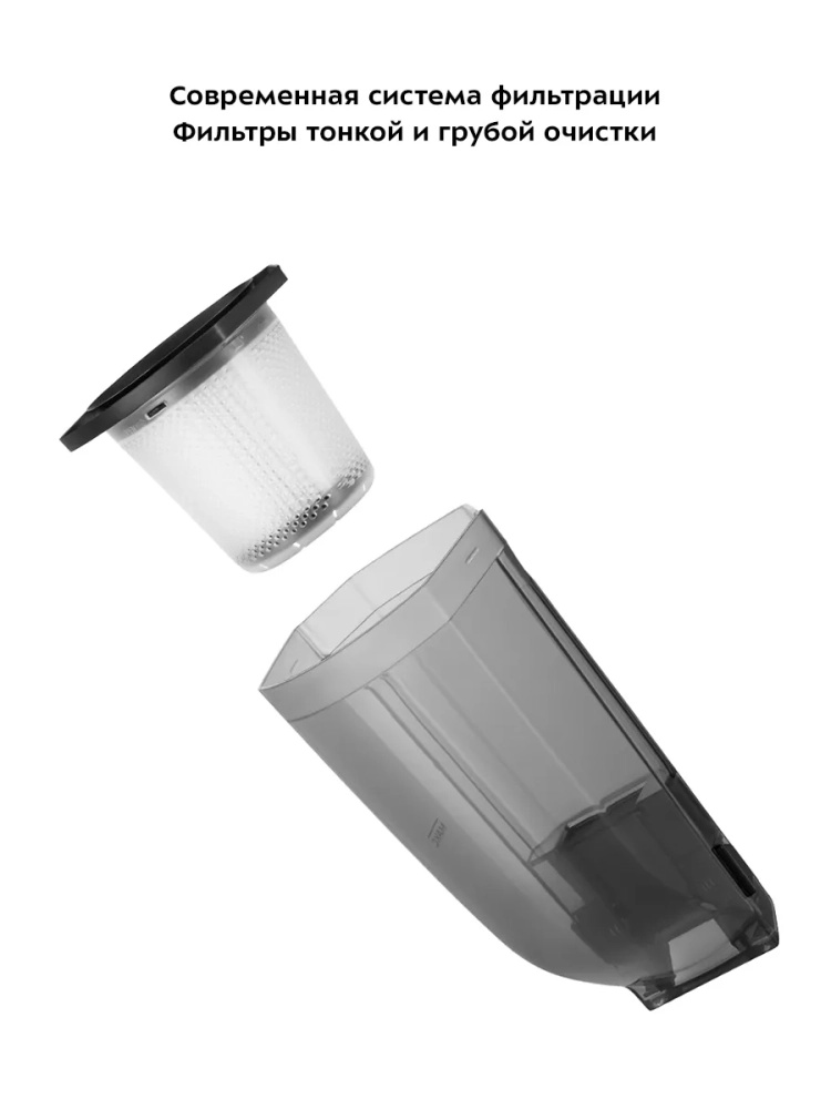 Пылесос работает от аккумулятора, что обеспечивает неограниченный радиус действия: от любого уголка квартиры до машины или беседки в саду.