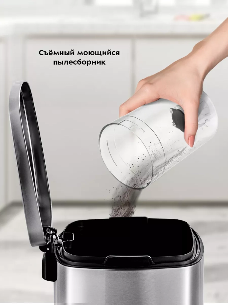 Пылесос оборудован современным циклонным фильтром, обеспечивающим хорошую очистку. В пылесосе установлен фильтр тонкой очистки, который задерживает частички пыли. Фильтр можно снять и промыть водой.