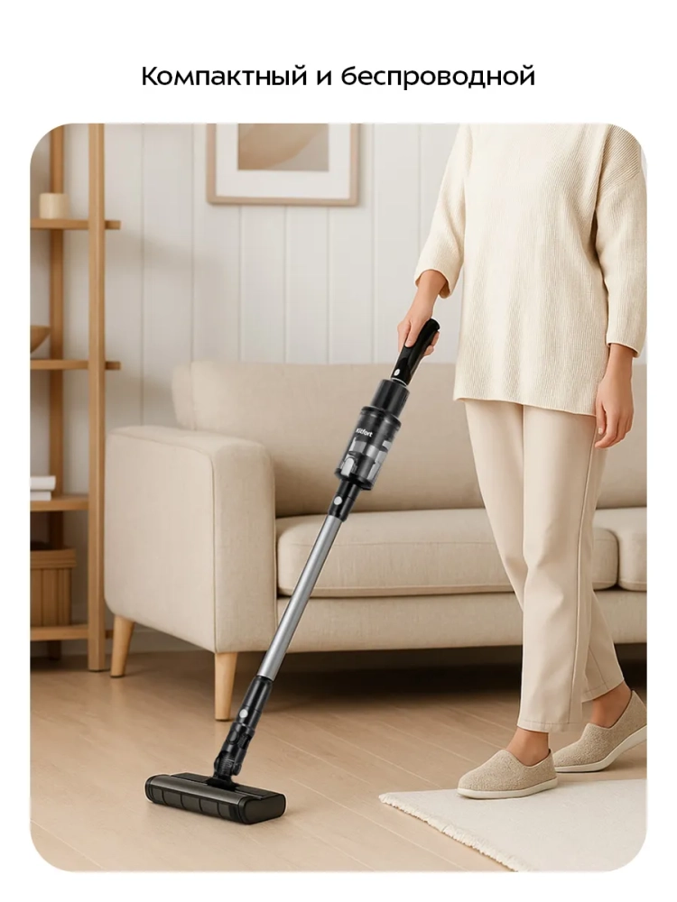 Одно из главных достоинств вертикального пылесоса — его компактность. Во время работы пылесос благодаря своей маневренности может легко вписаться в узкий коридор или комнату, заполненную различными предметами. Вертикальный пылесос хорошо подходит для оперативной уборки, например, рассыпанных крошек или песка от обуви в коридоре.