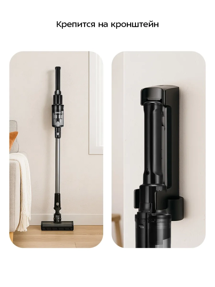У пылесоса нет функции вертикальной парковки, поэтому пылесос рекомендуется устанавливать на кронштейн из комплекта, который крепится к стене. Для владельцев небольших квартир, которые сталкиваются с проблемой, где же хранить пылесос, приобретение этой модели будет оптимальным вариантом.
