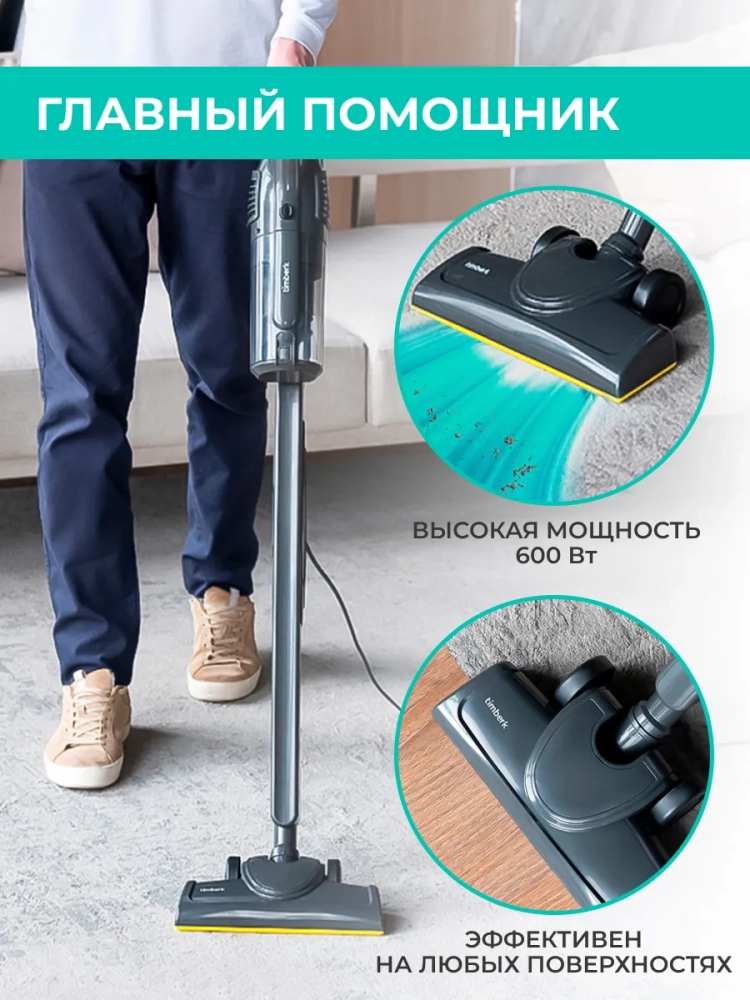 Пылесос 2 в 1 T-VCH-53 - отличное решение для быстрой и эффективной уборки напольного покрытия, ковра и мебели. Отсоединяемый ручной пылесос с различными насадками подходит для уборки мебели и других предметов интерьера.