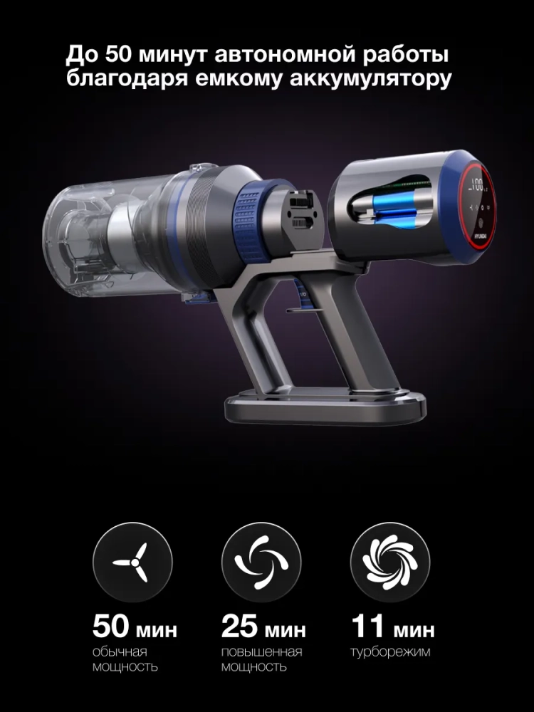 • 3 режима работы (обычный, повышенный, турбо) для разных типов загрязнений.
