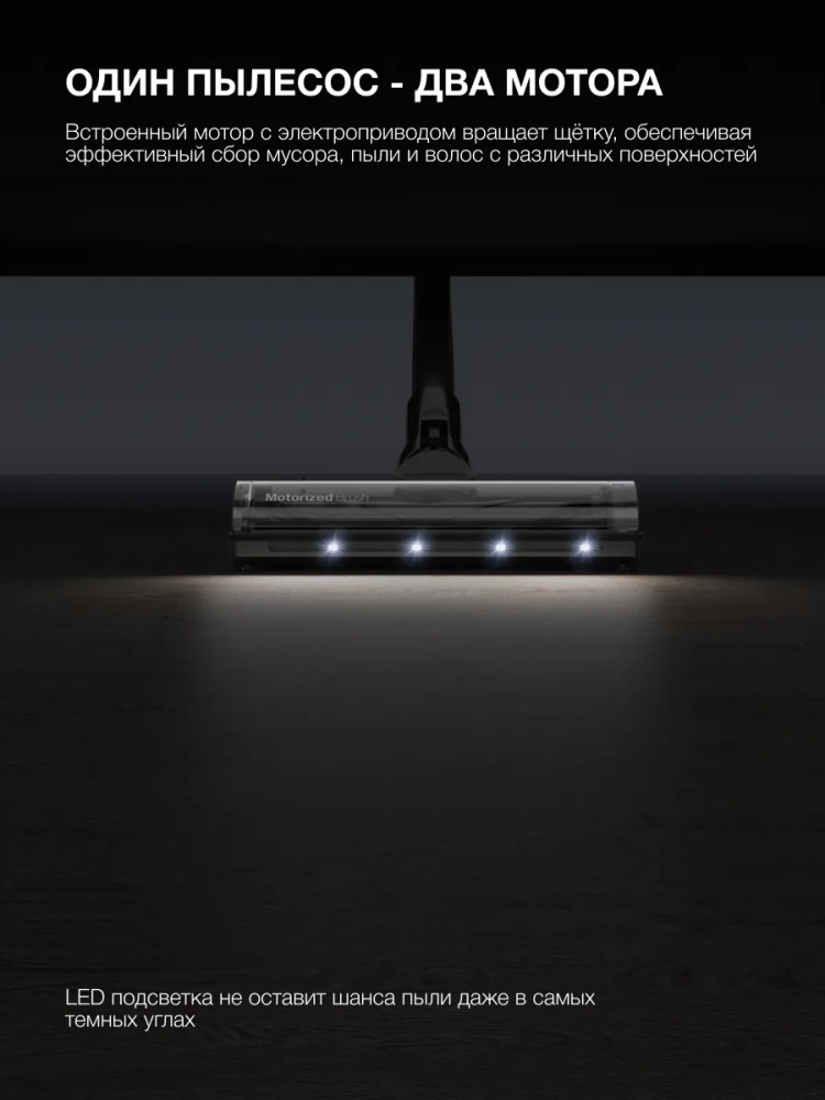 • Богатая комплектация: моторизированная щётка, насадка для мягкой мебели, щелевая насадка и настенное крепление.