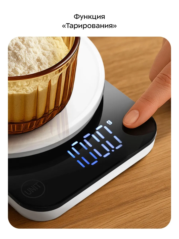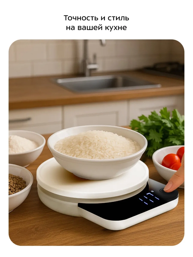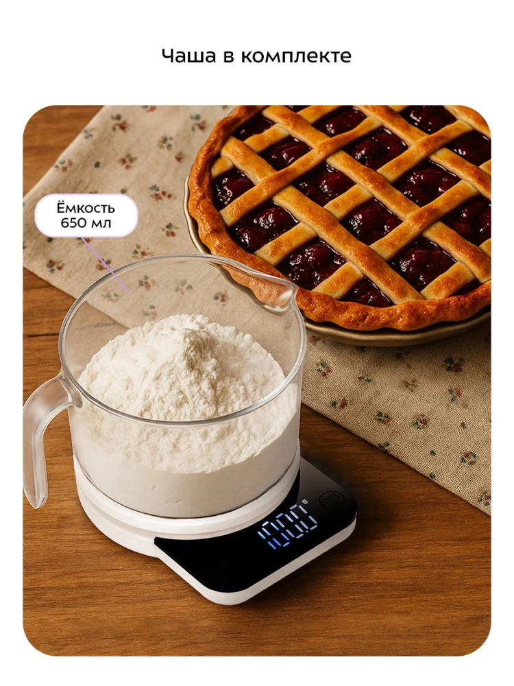 Электронные кухонные весы настольные КТ-867 от Kitfort — это идеальный выбор для тех, кто ценит точность и удобство на кухне. Эти весы обеспечивают высокую точность измерений, позволяя определять вес продуктов до 5 кг с шагом в 1 грамм. Это делает их незаменимым помощником при приготовлении блюд, где важна каждая деталь. Весы оснащены крупным дисплеем, который обеспечивает легкость считывания данных. Функции тарирования и выбора единиц измерения делают использование устройства максимально простым и удобным. В комплекте с весами идет пластиковая чаша для еды объемом 650 мл с мерной шкалой, что позволяет точно отмерять жидкие ингредиенты. Работают эти кухонные весы от двух батареек типоразмера ААА (входят в комплект), что обеспечивает длительное время работы без необходимости частой замены элементов питания. Питание осуществляется при напряжении =3 В (2 элемента AAA × 1,5 В). Класс защиты III гарантирует безопасность использования прибора. Кухонные электронные весы КТ-867 имеют минимальный порог взвешивания в 5 г и максимальную нагрузку до 3 кг. Цена деления составляет всего лишь 1 г, что позволяет точно следить за количеством используемых ингредиентов даже в самых сложных рецептах. Компактный размер устройства (150 × 170 × 110 мм) делает его удобным для хранения даже на небольшой кухне. Стильный дизайн позволит этим электронным настольным весам вписаться в любой интерьер кухни без ущерба для эстетики пространства. Рабочий диапазон температур этих кухонных электронных весов составляет от +5 до +40 °С, что позволяет использовать их практически в любых условиях приготовления пищи.