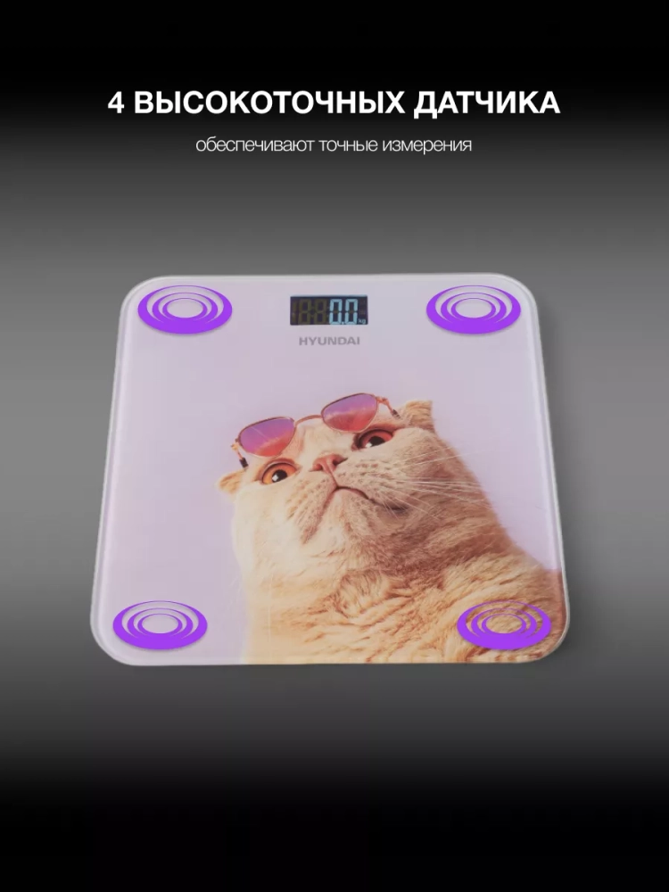 Весы напольные электронные Hyundai H-BS03456 сиреневый, нагрузка до 180кг, материал платформы закаленное стекло, питание от 2хAAA. Элементы питания в комплекте