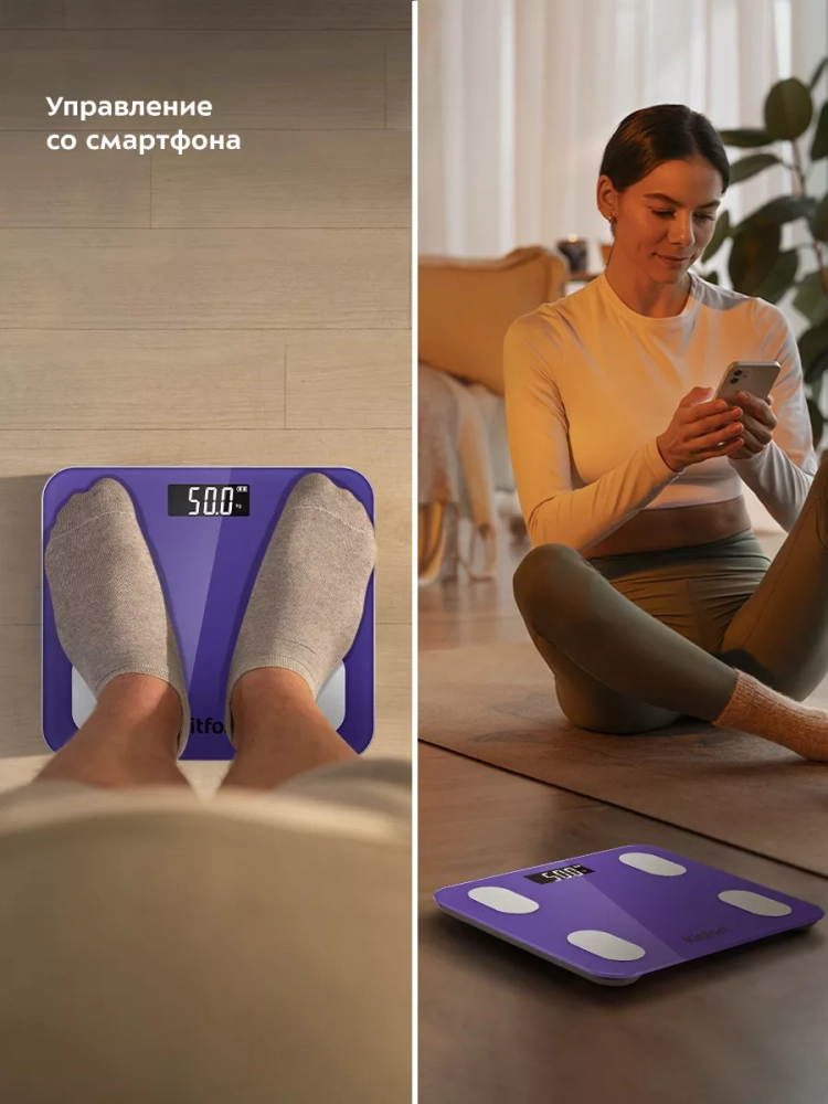 Электронные напольные весы обеспечивают высокую точность измерения, что очень важно людям, следящим за своим весом. Весы Kitfort КТ-827 представляют современное поколение «умных» весов, поскольку их можно подключить к приложению FitGo, включив передачу данных через Bluetooth. Приложение выводит на экран телефона разные параметры биоимпедансного анализа: индекс массы тела, мышечную массу, процентное содержание воды и жира в организме и т.д.
