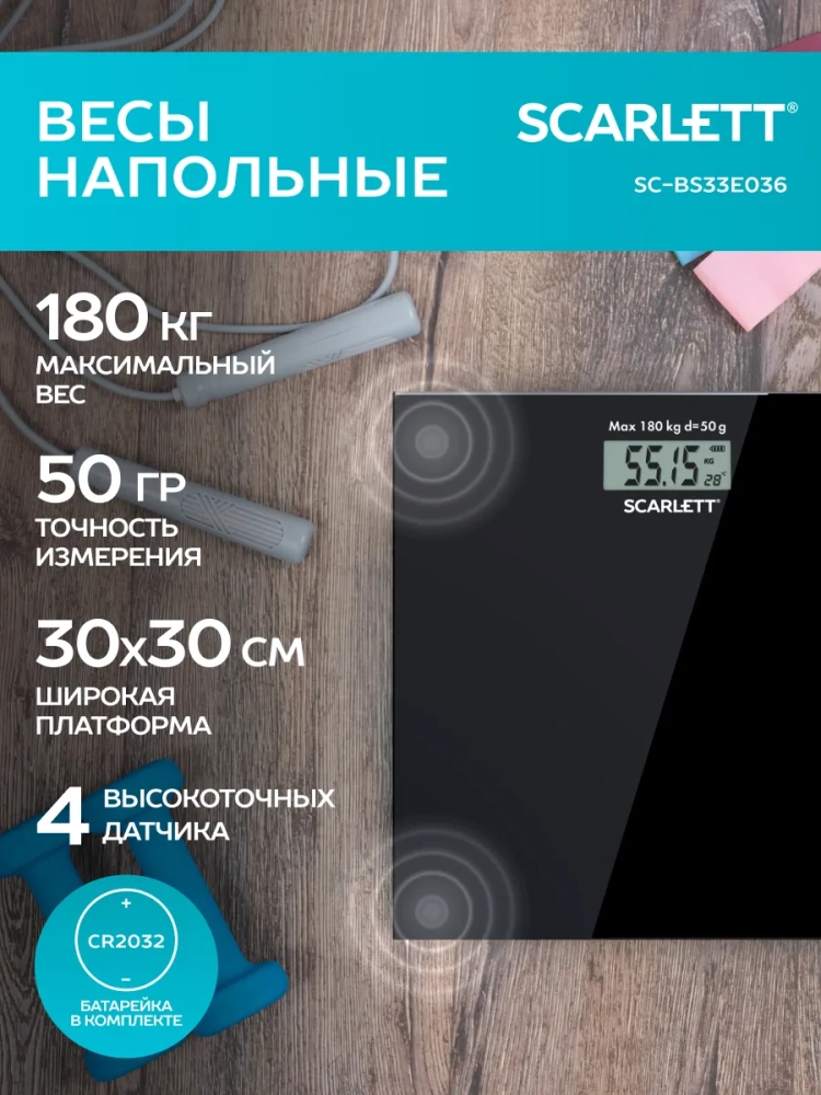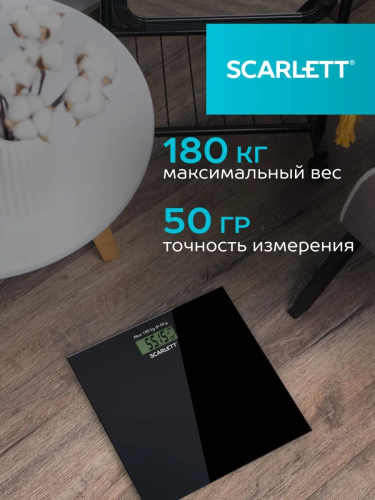 Напольные весы Scarlett - это простой и удобный способ контролировать свой вес! Благодаря высокочувствительным датчикам погрешность составит не более одной цены деления: 100 г. Максимальный вес: 180 кг. Ультратонкий дизайн обеспечит компактное хранение. Материал платформы - высокопрочное закаленное стекло. Автоматическое включение и выключение позаботятся об экономом расходе заряда батареи. Индикатор перегрузки и индикатор батарейки обеспечат комфортную эксплуатацию. Большой жидкокристаллический дисплей 74 x 30 мм делает эксплуатацию весов комфортнее. Прорезиненные ножки придают дополнительной устойчивости и предотвращают скольжение.