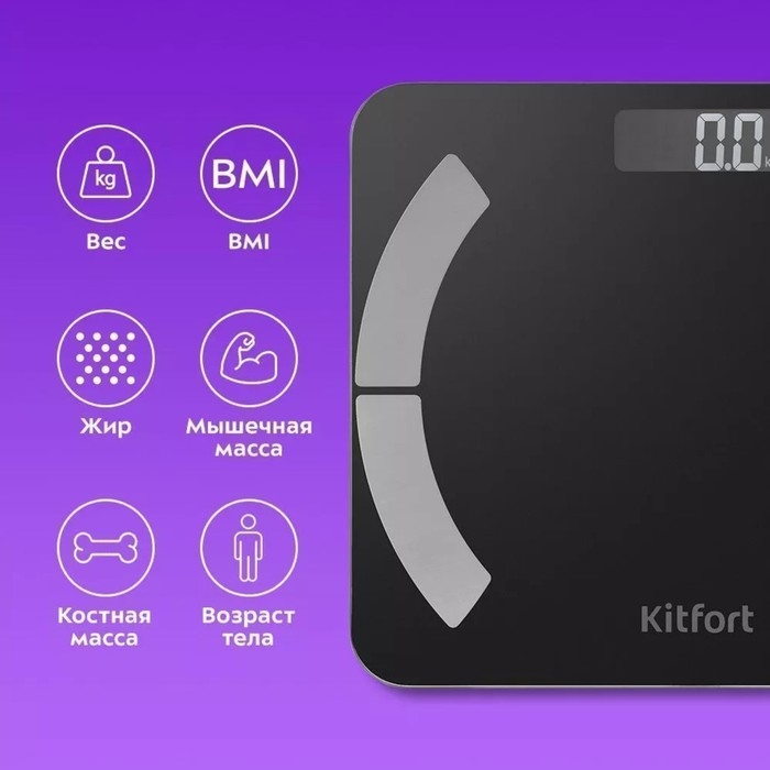 Весы напольные Kitfort КТ-814, до 180 кг, от 2хААА (в комплекте), чёрные