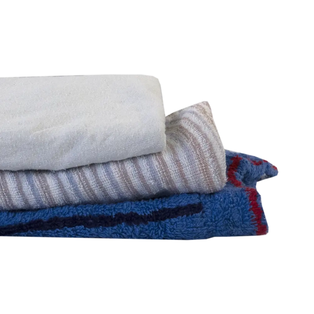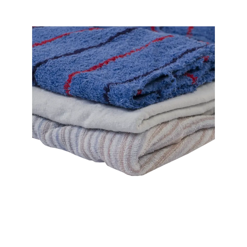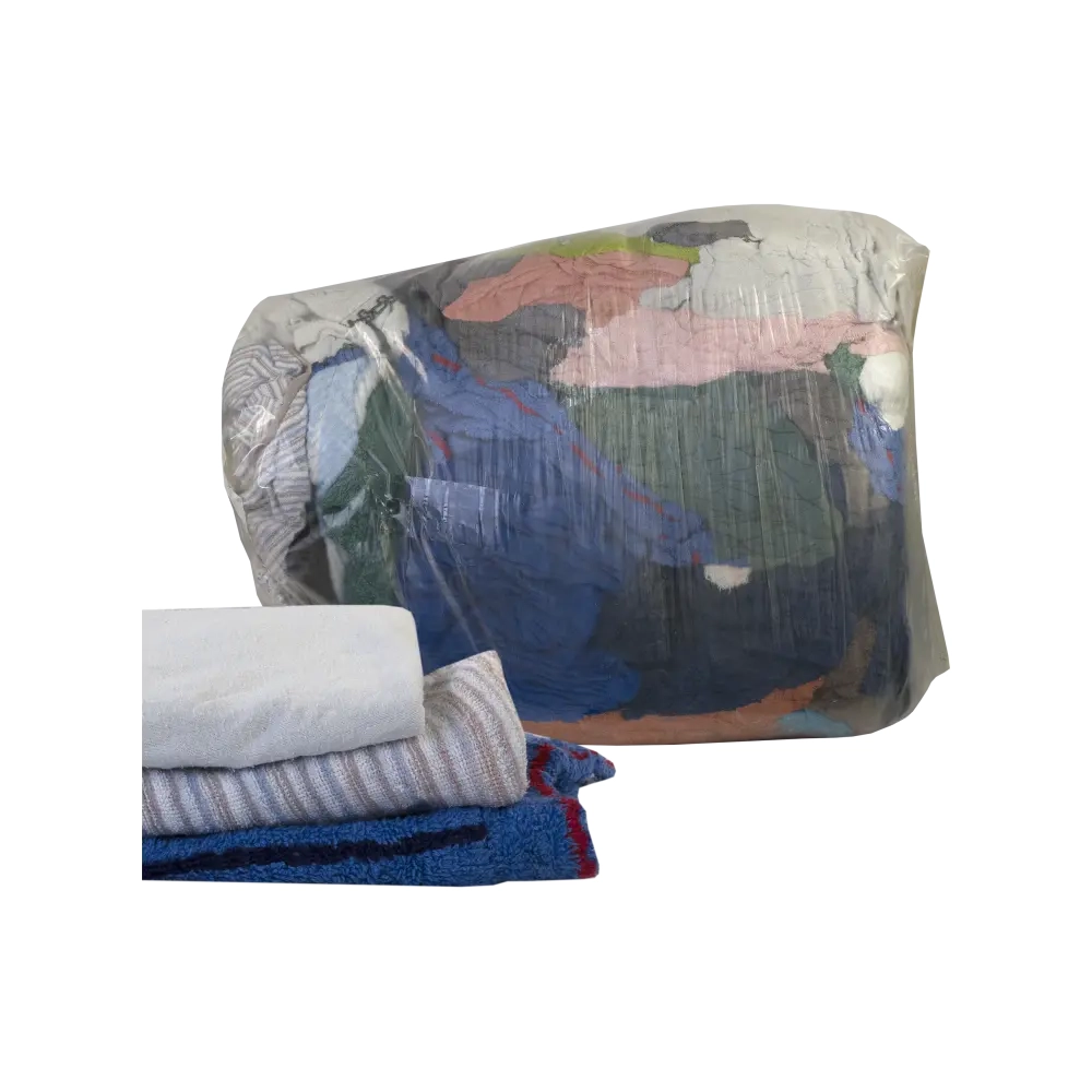 Переработанные изделия секонд-хенд из махровых тканей любого цвета (бытовые халаты, полотенца, простыни, наматрасники). Лоскуты неправильной формы, средний размер 40х60 см. Идеально впитывает жидкости, подходит для сбора воды и уборки помещений. Махра является выгодной альтернативой ХПП, благодаря большей прочности, гигроскопичности и меньшей цене. Упаковка - брикет 10 кг, количество лоскутов в брикете - 50-70 штук.