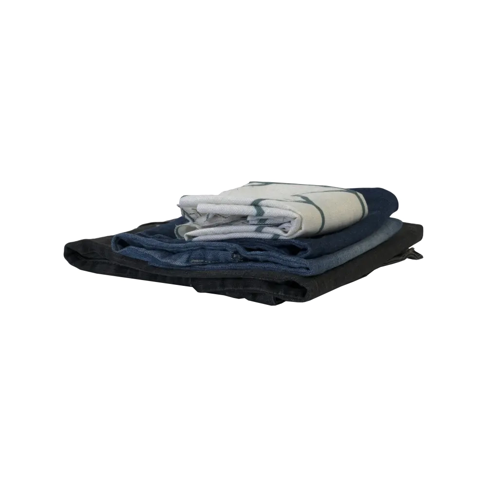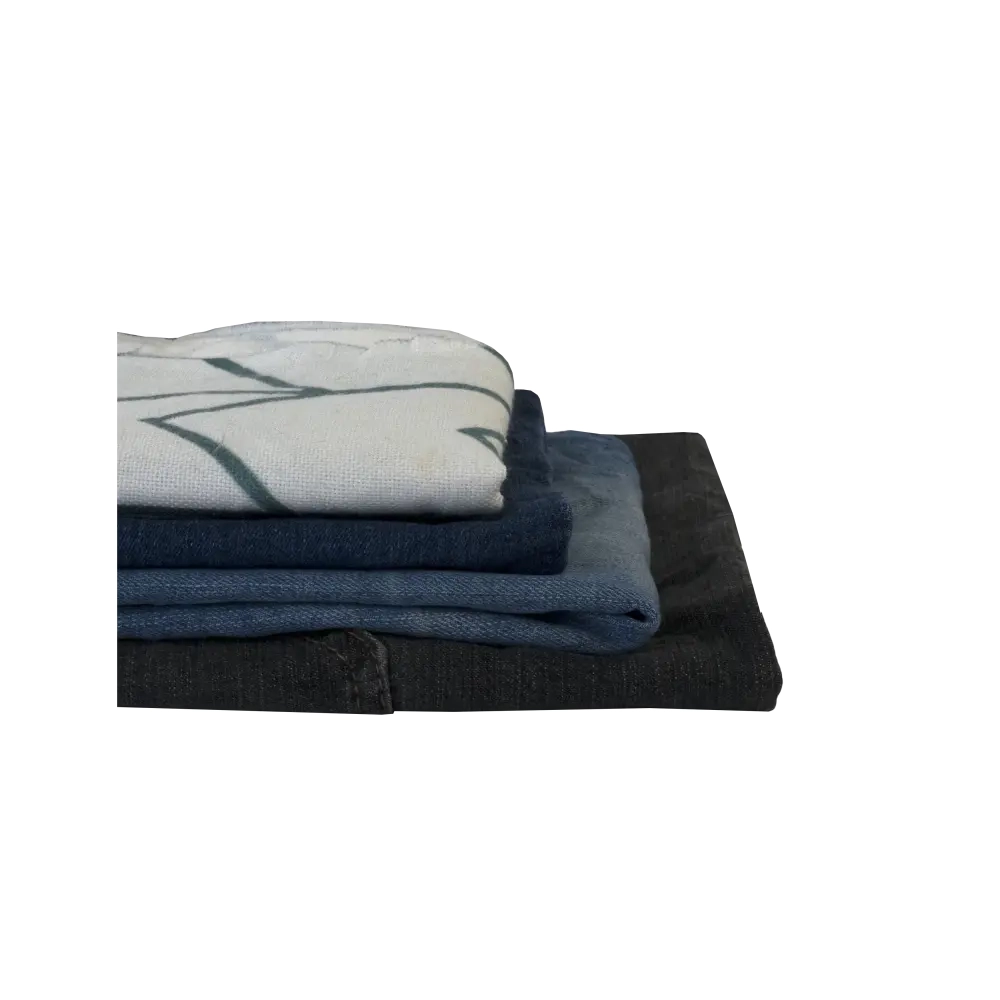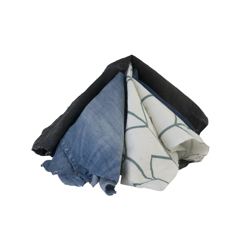 Ветошь состоит из: переработанной одежды: пуловеры, водолазки, брюки, юбки, рубашки, комбинезоны, спецодежда, рабочая одежда из смесовых, плотных и грубых х/б тканей. Лоскуты неправильной формы, средний размер 40х60 см. Количество лоскутов в одном брикете – 80-100 штук.