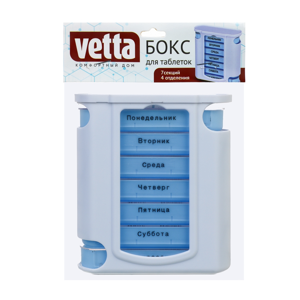 VETTA Бокс для хранения таблеток, 7 блоков по 4 отделения, пластик, 11,5х4,5x13 см