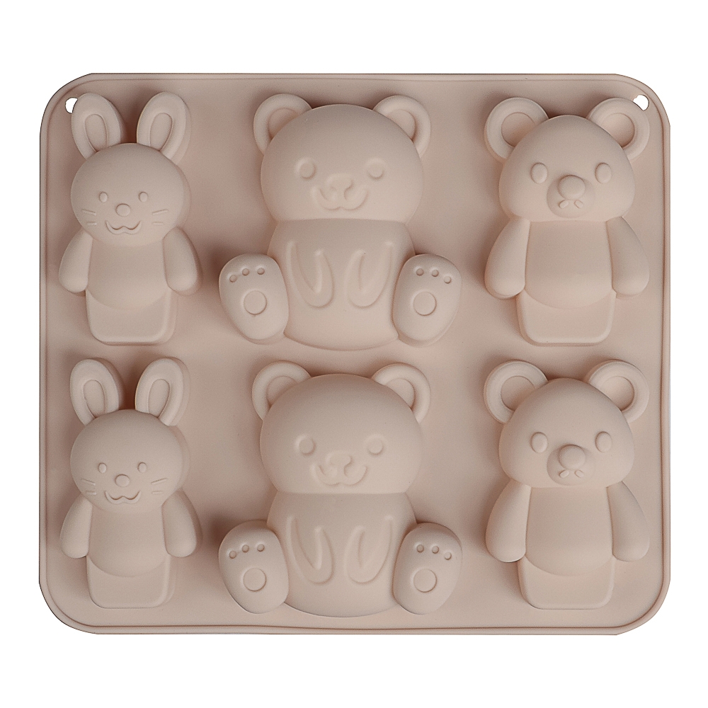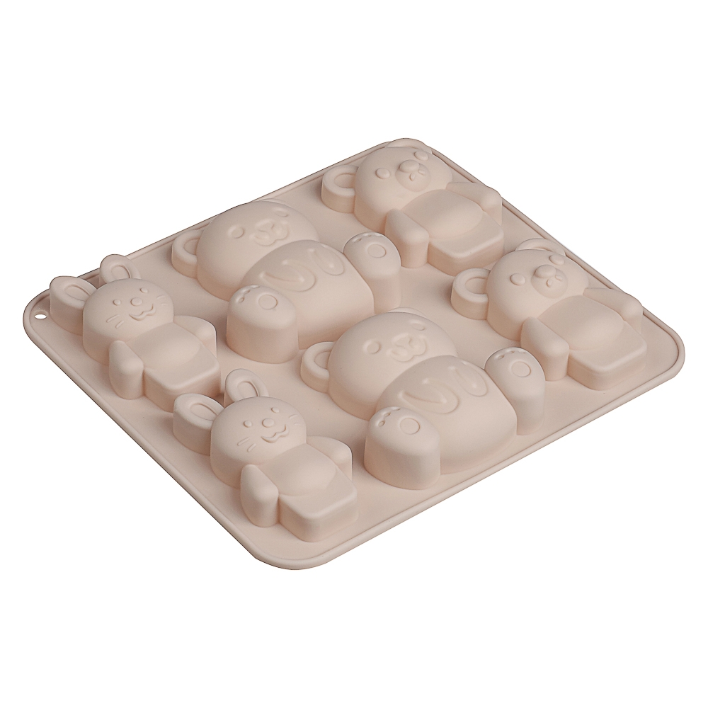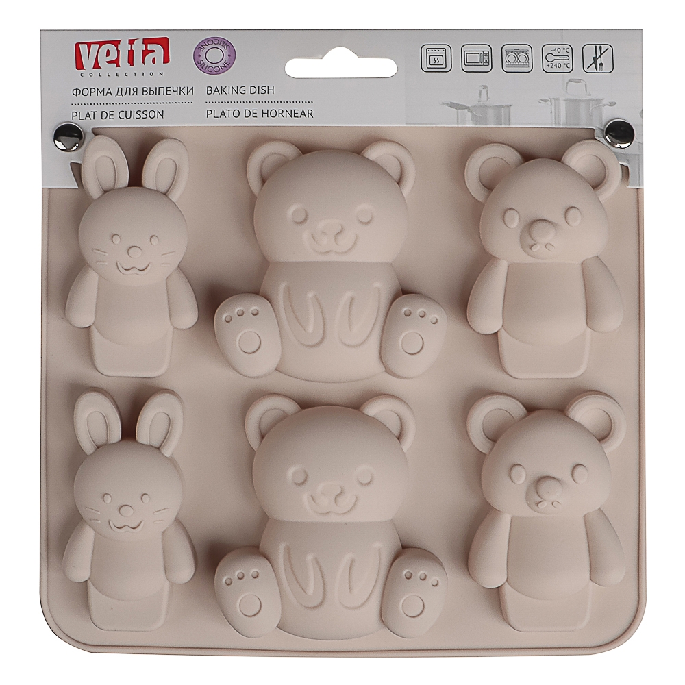 VETTA Форма для выпечки 6 ячеек 16х14х2см, "Мишки и зайчики", силикон, 3 цвета