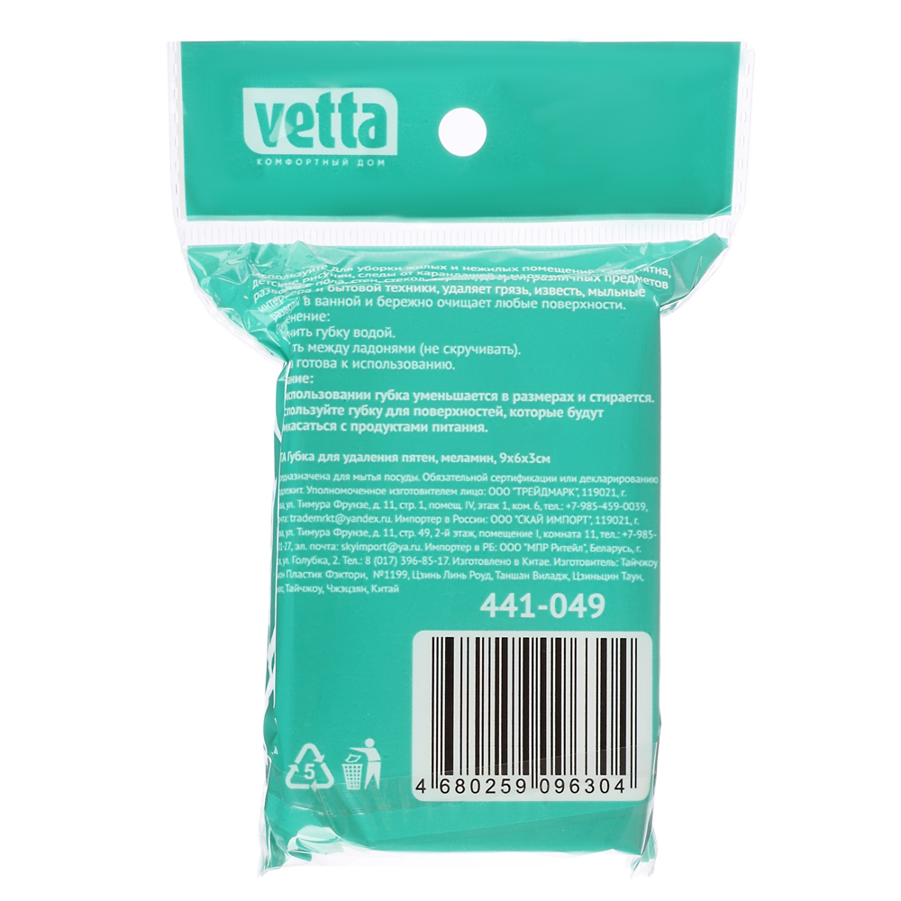 VETTA Губка для удаления пятен, меламин, 9х6х3см