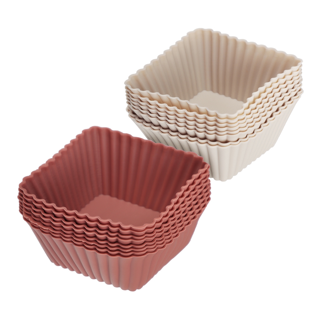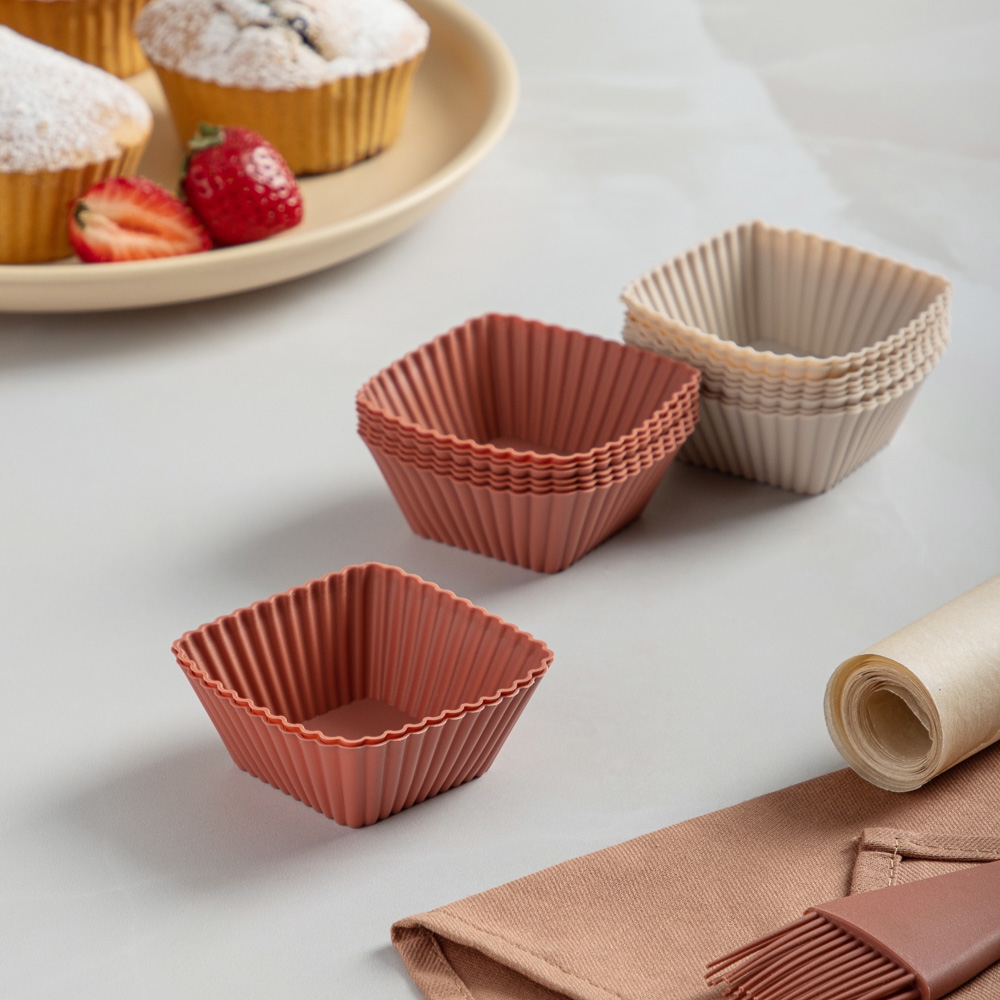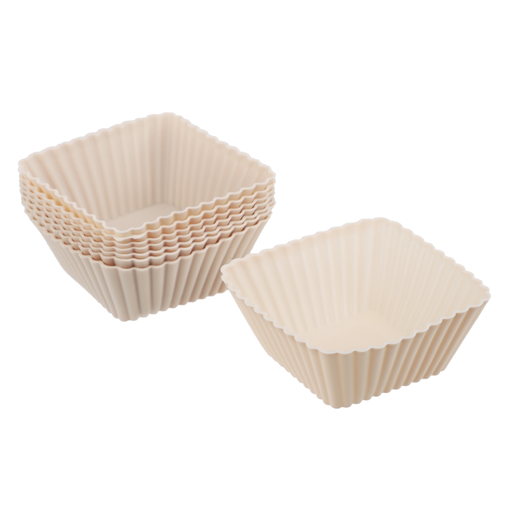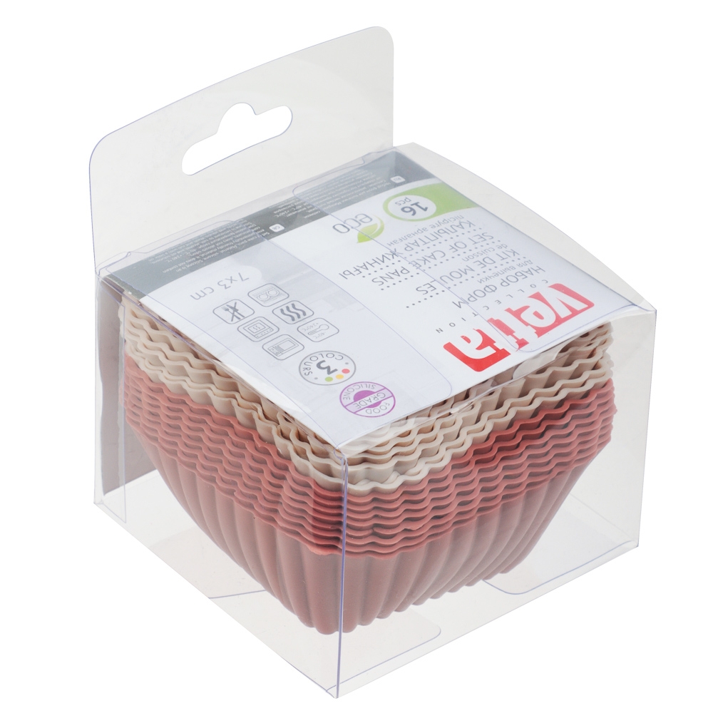 Набор из 16-ти формочек размером 7х3 см из силикона предназначен для выпечки кексов, сырников, маффинов и других видов выпечки в духовом шкафу. Силиконовые формочки выдерживают высокую температуру нагрева, легко моются и идеальны для многоразового использования. Тесто при выпекании не прилипает ко дну и стенкам формочки, поэтому готовые изделия всегда получаются красивыми и аппетитными.