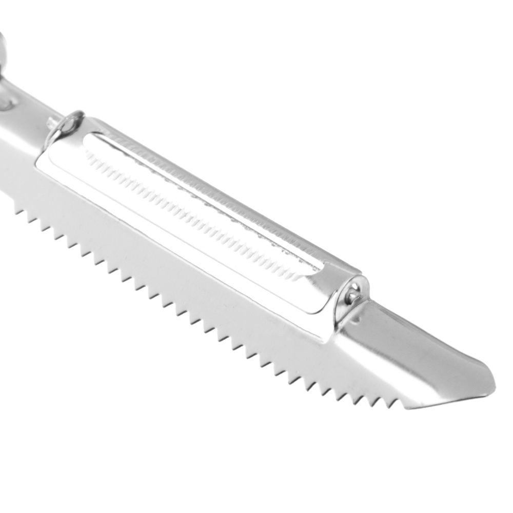 Очистка овощей больше не будет для вас скучным и трудоемким процессом. Ведь теперь у вас есть овощечистка, позволяющая быстро очистить овощи, а следовательно – ускорить процесс готовки. Ее лезвие изготовлено из высококачественной нержавеющей стали. Главное преимущество овощечистки – универсальность. Инструмент подходит для работы с любыми видами фруктов и овощей круглой и овальной формы.